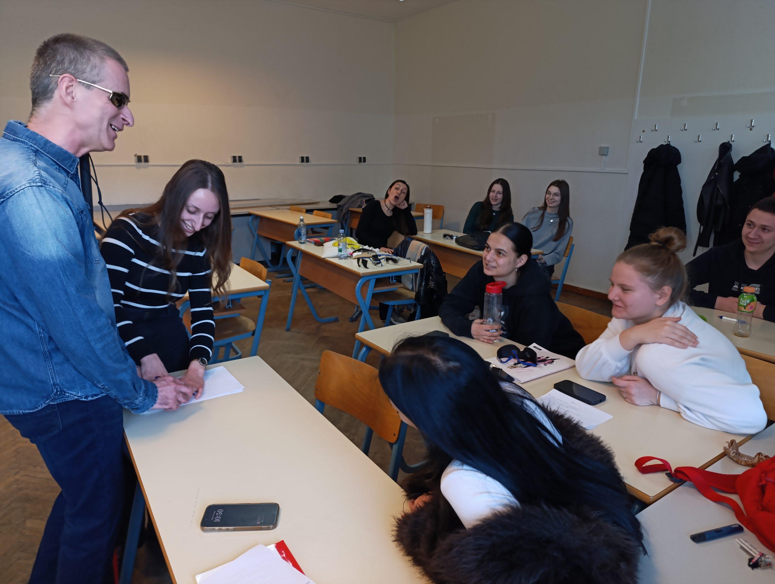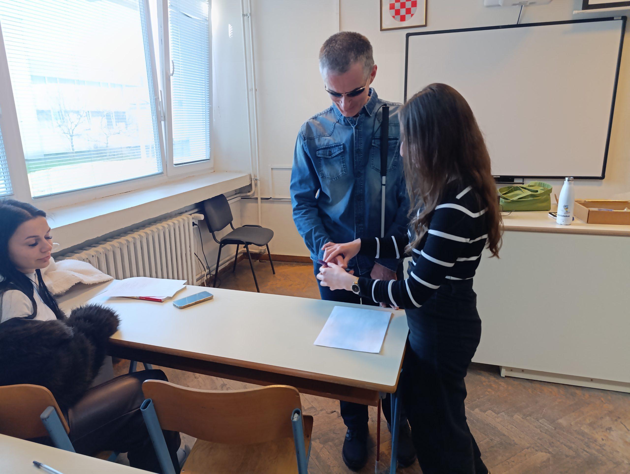 U Udruga slijepih Koprivničko-križevačke županije u suradnji s nastavnicom Marijom Križić 25. veljače 2026. održala je drugu radionicu „Gledajte kroz naše naočale“ maturante smjera medicinska sestra/tehničar opće njege u Srednjoj školi Koprivnica.