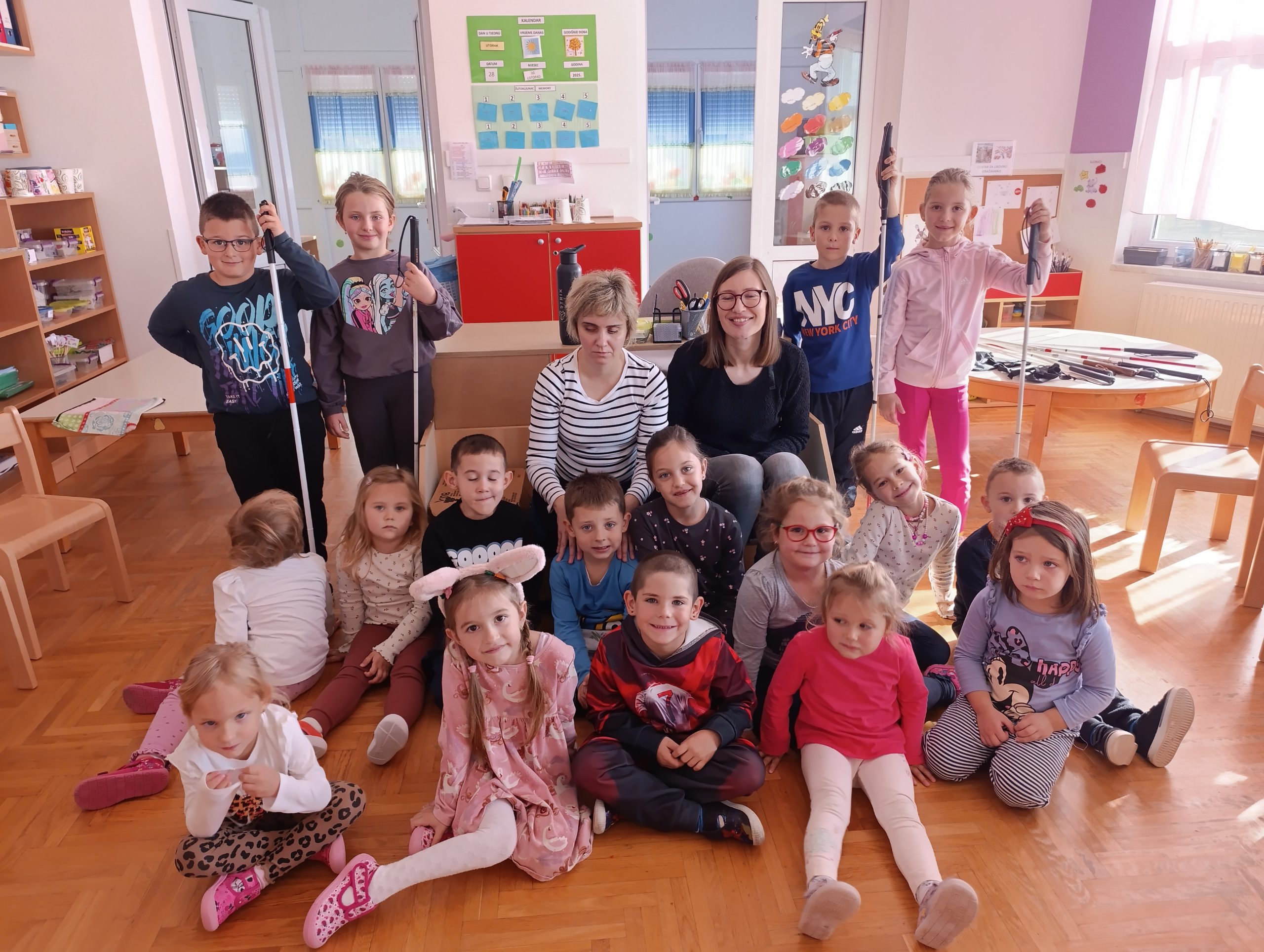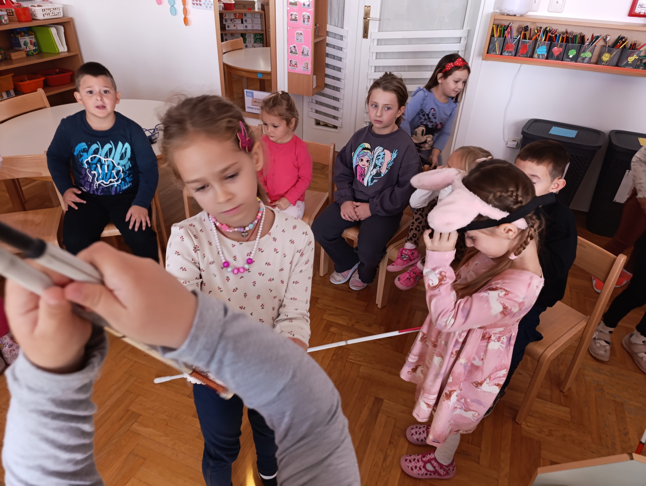 Cilj radionice bio je djeci na zanimljiv i pristupačan način približiti svakodnevni život osoba s oštećenjem vida te potaknuti empatiju, razumijevanje i inkluziju od najranije dobi.
