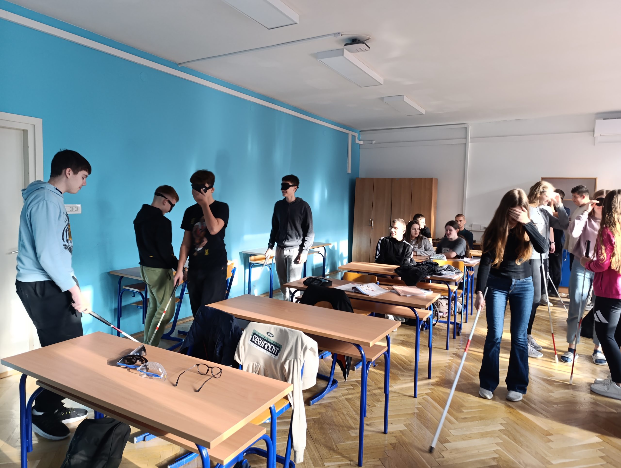 U petak, 7. studenoga 2025. godine, Udruga slijepih Koprivničko-križevačke županije održala je radionicu „Gledajte kroz naše naočale“ za učenike osmih razreda Osnovne škole Koprivnički Bregi.