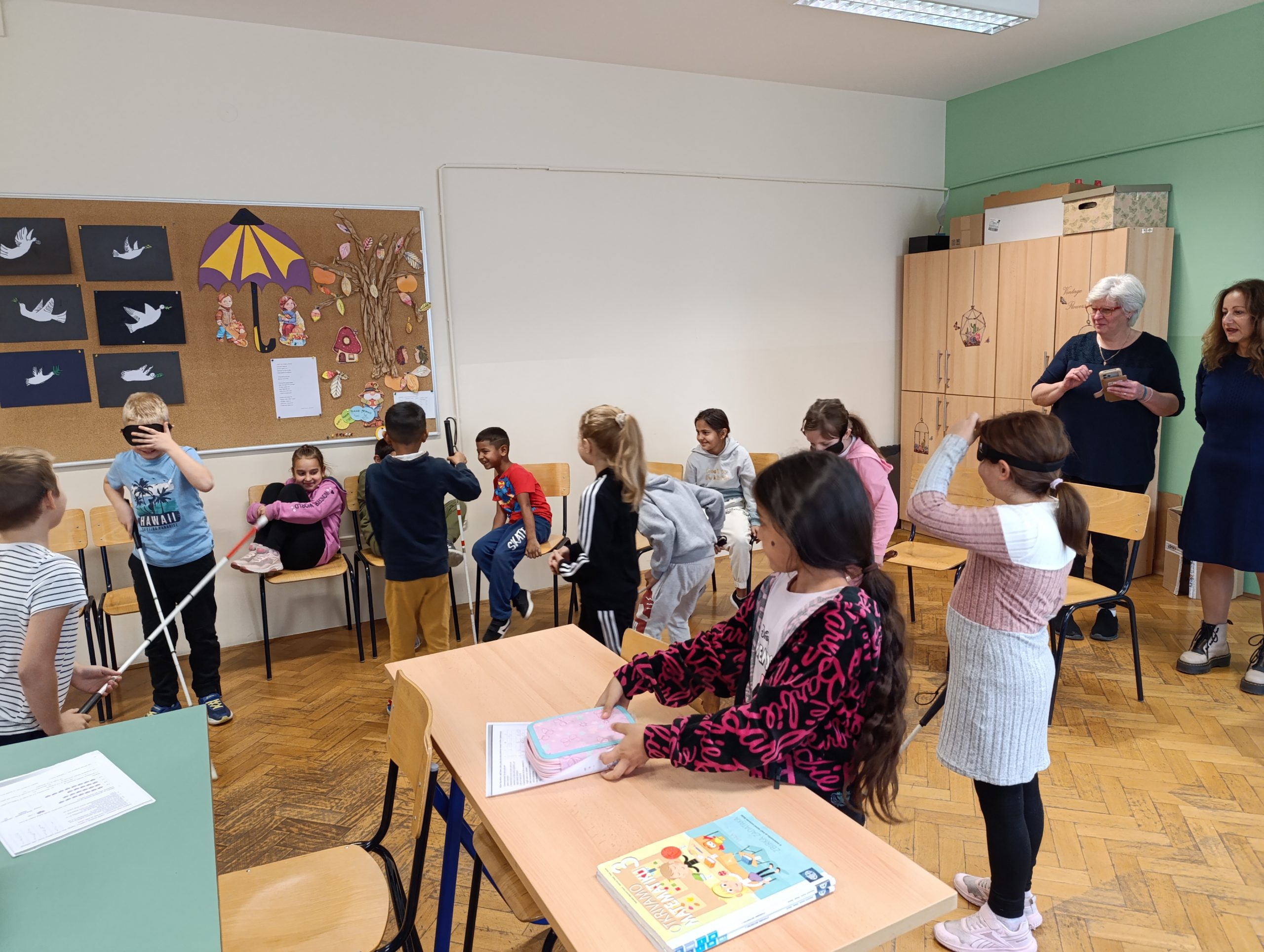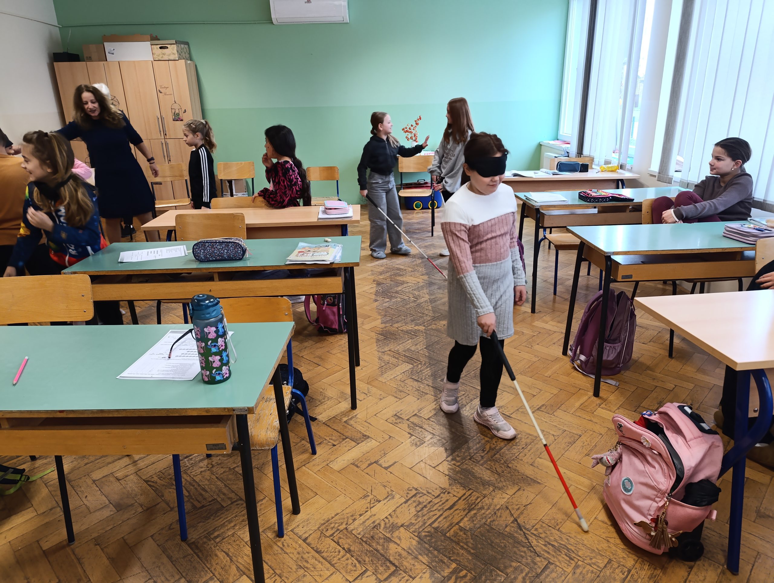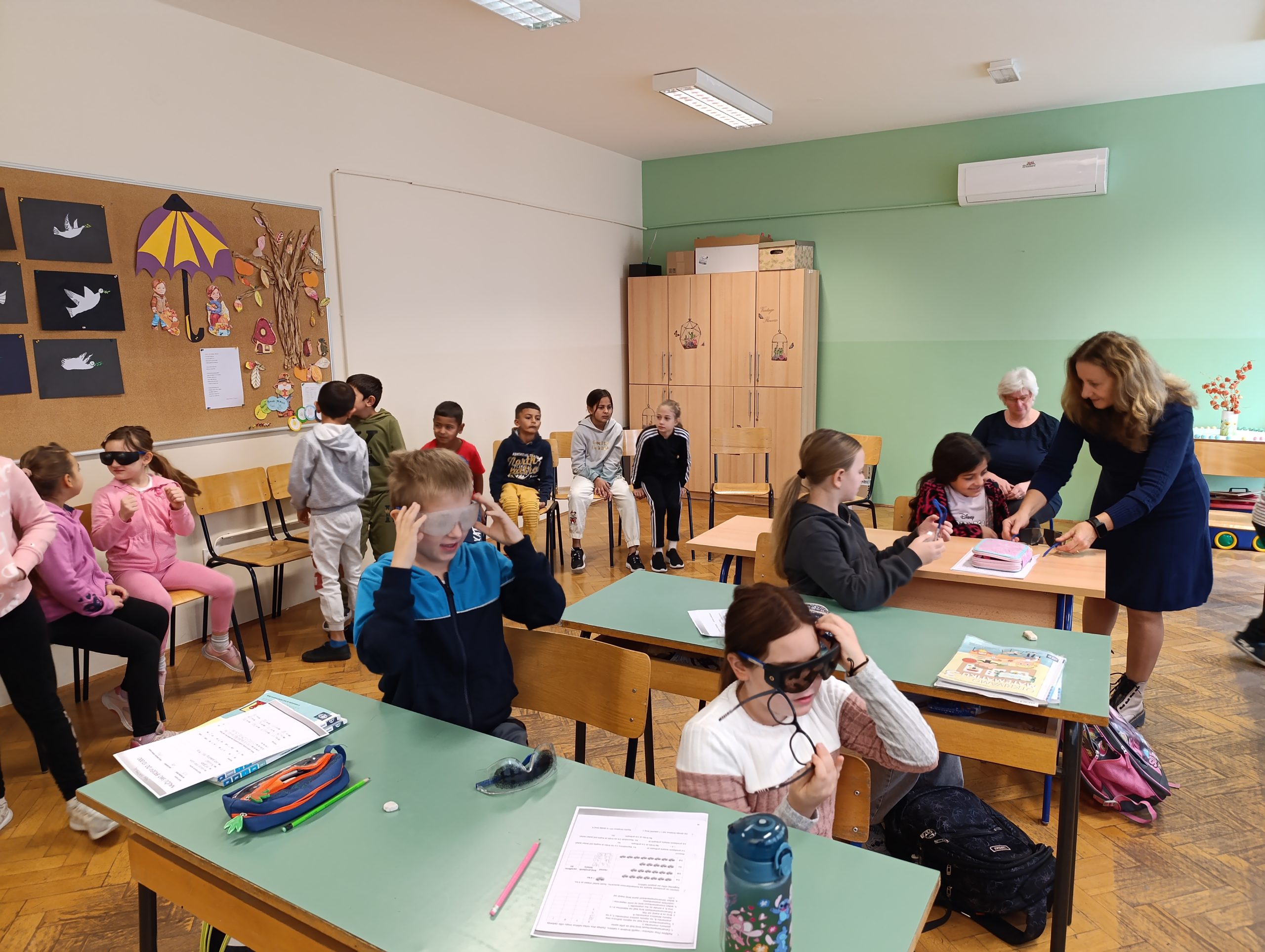 Predsjednik Udruge Mario Šutalo i stručna izvoditeljica programa Iva Mlinarić učenicima su na zabavan i interaktivan način približili temu kroz radionicu „Gledajte kroz naše naočale“. Kroz niz zanimljivih aktivnosti učenici su naučili kako pristupiti, komunicirati i pružiti podršku osobama s oštećenjem vida u svakodnevnim situacijama.