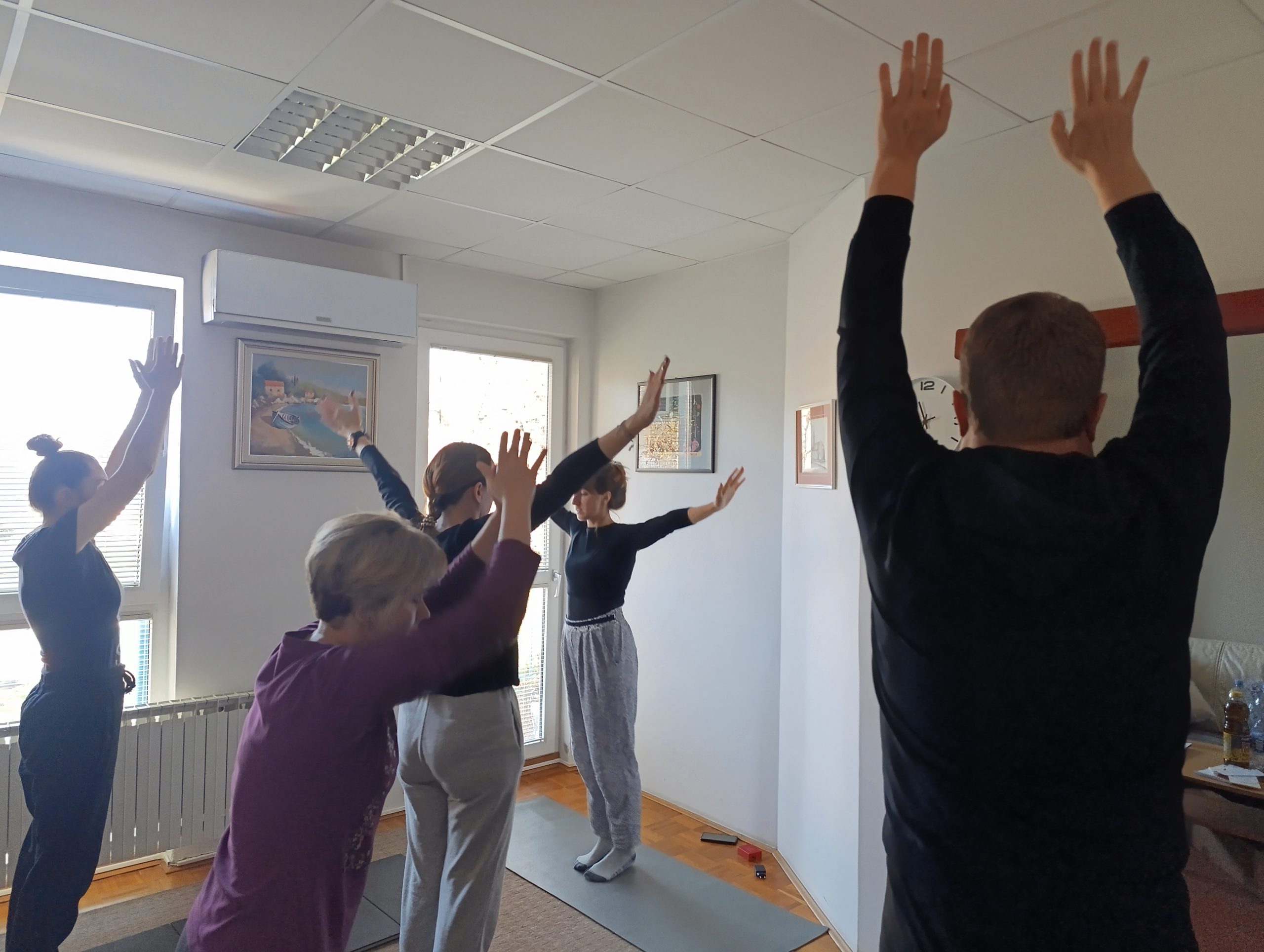 Radionicu joge za članove Udruge vodila je volonterka Iva Pintarec, koja je svojom toplinom, strpljenjem i entuzijazmom stvorila ugodnu i poticajnu atmosferu. Sudionici su imali priliku upoznati se s osnovnim joga vježbama koje doprinose boljoj koordinaciji, držanju tijela, ravnoteži te općem opuštanju uma i tijela.