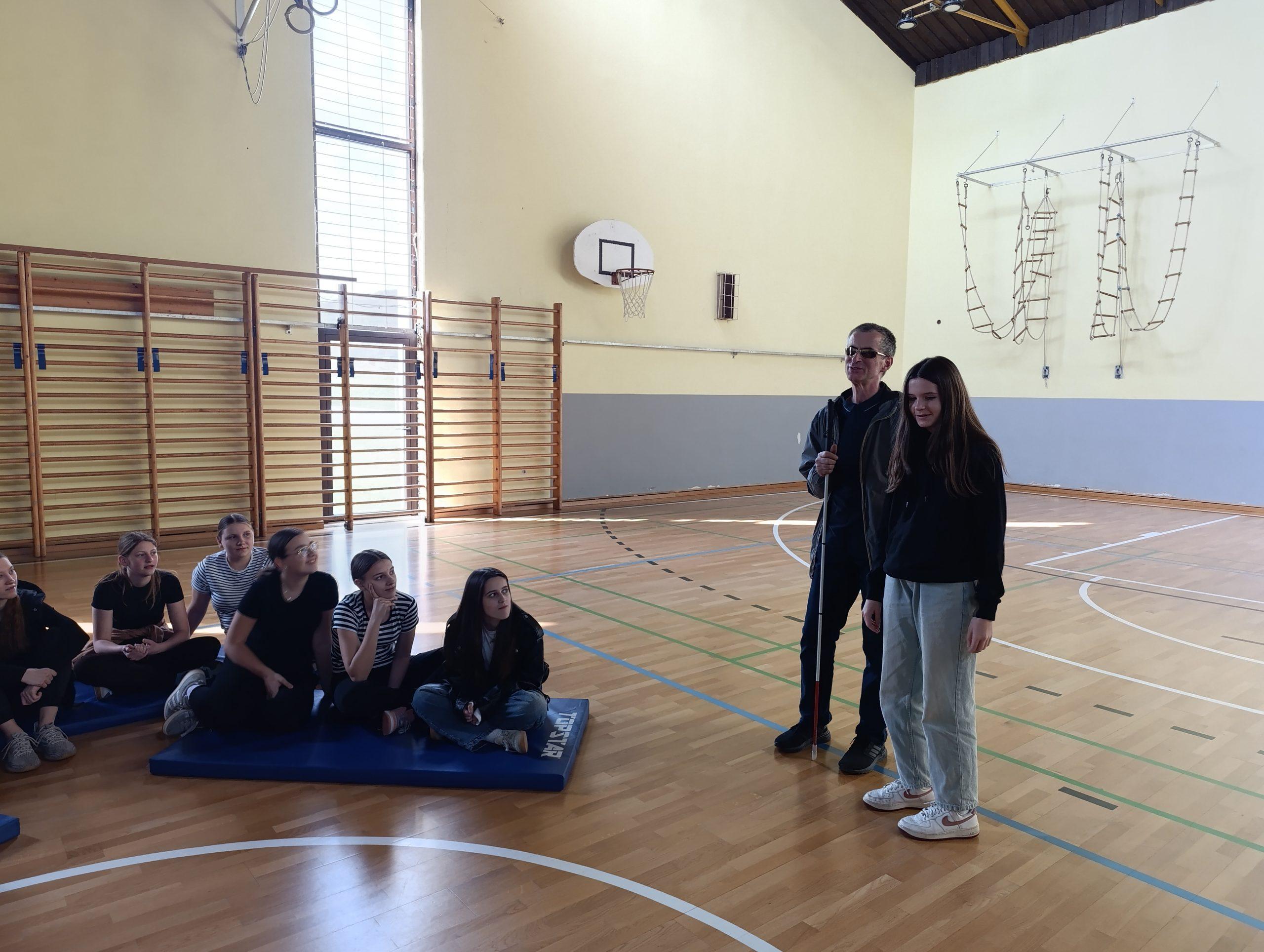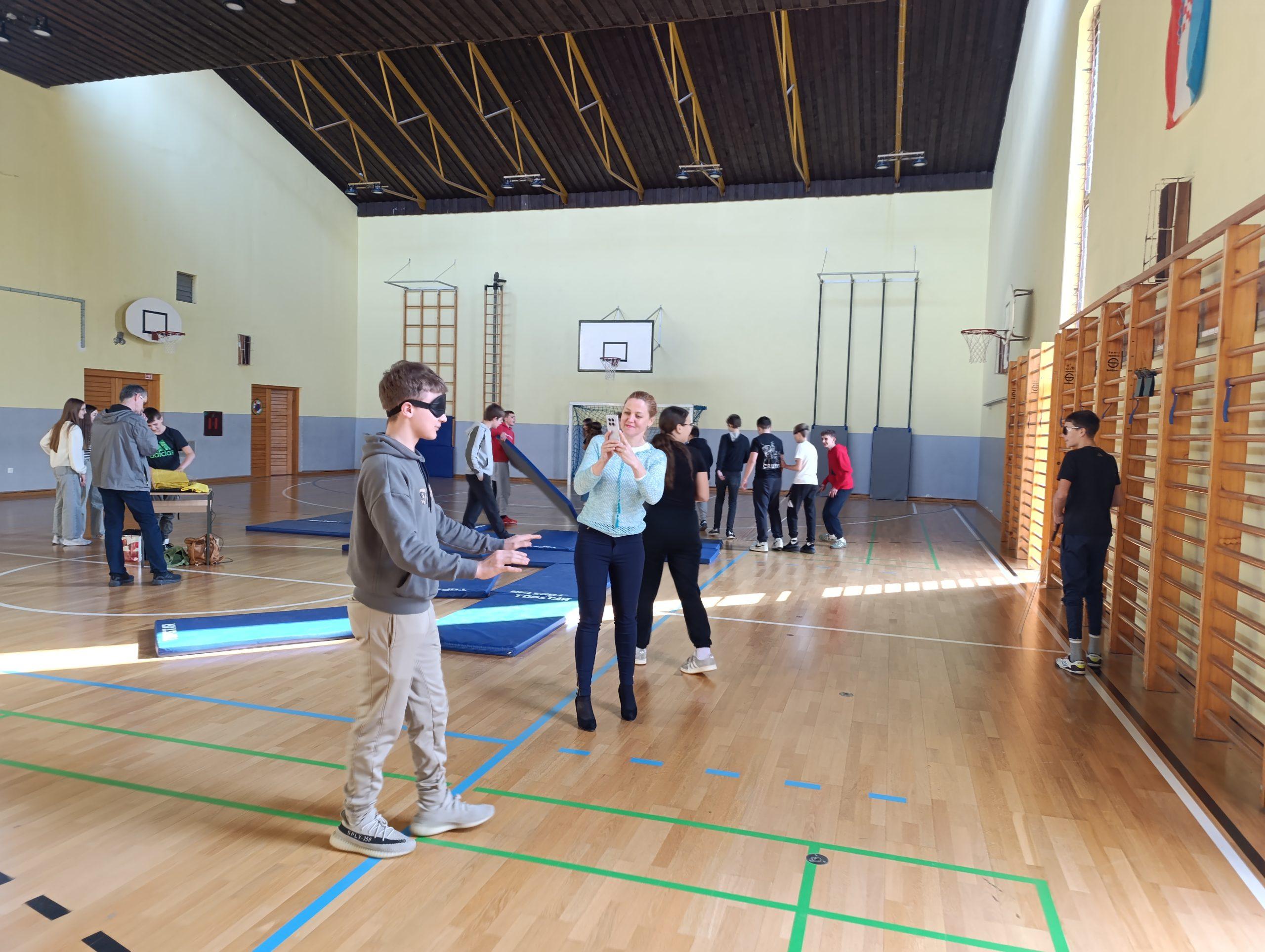 • Orijentacija u prostoru: Korištenjem dugog bijelog štapa, učenici su testirali svoje vještine snalaženja u prostoru, učeći kako se osloniti na sluh i dodir kada vidni podražaji izostanu.