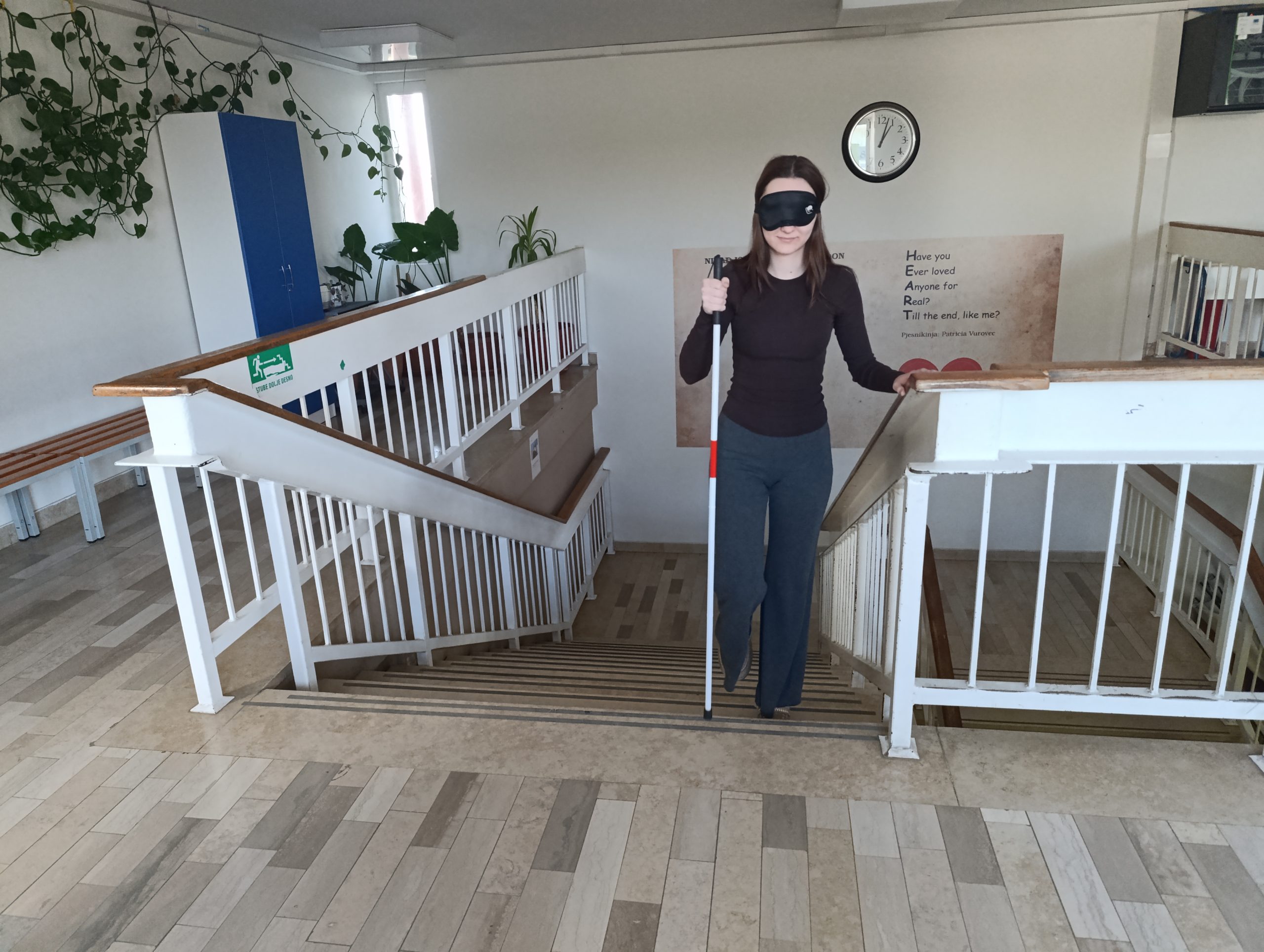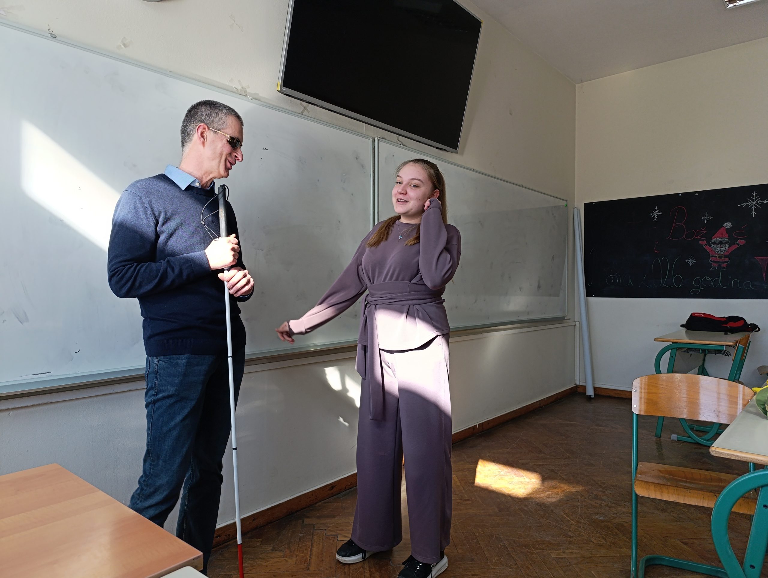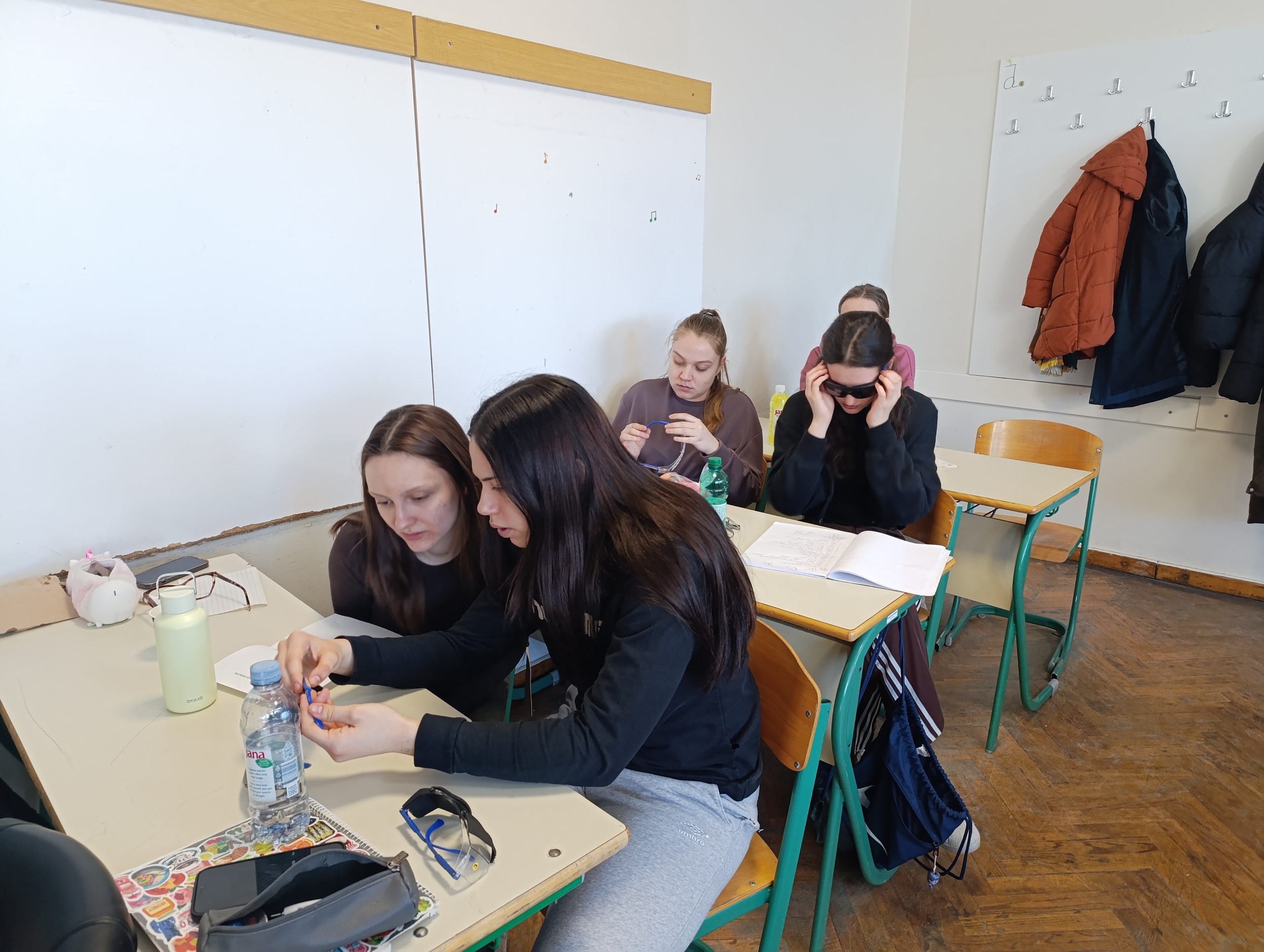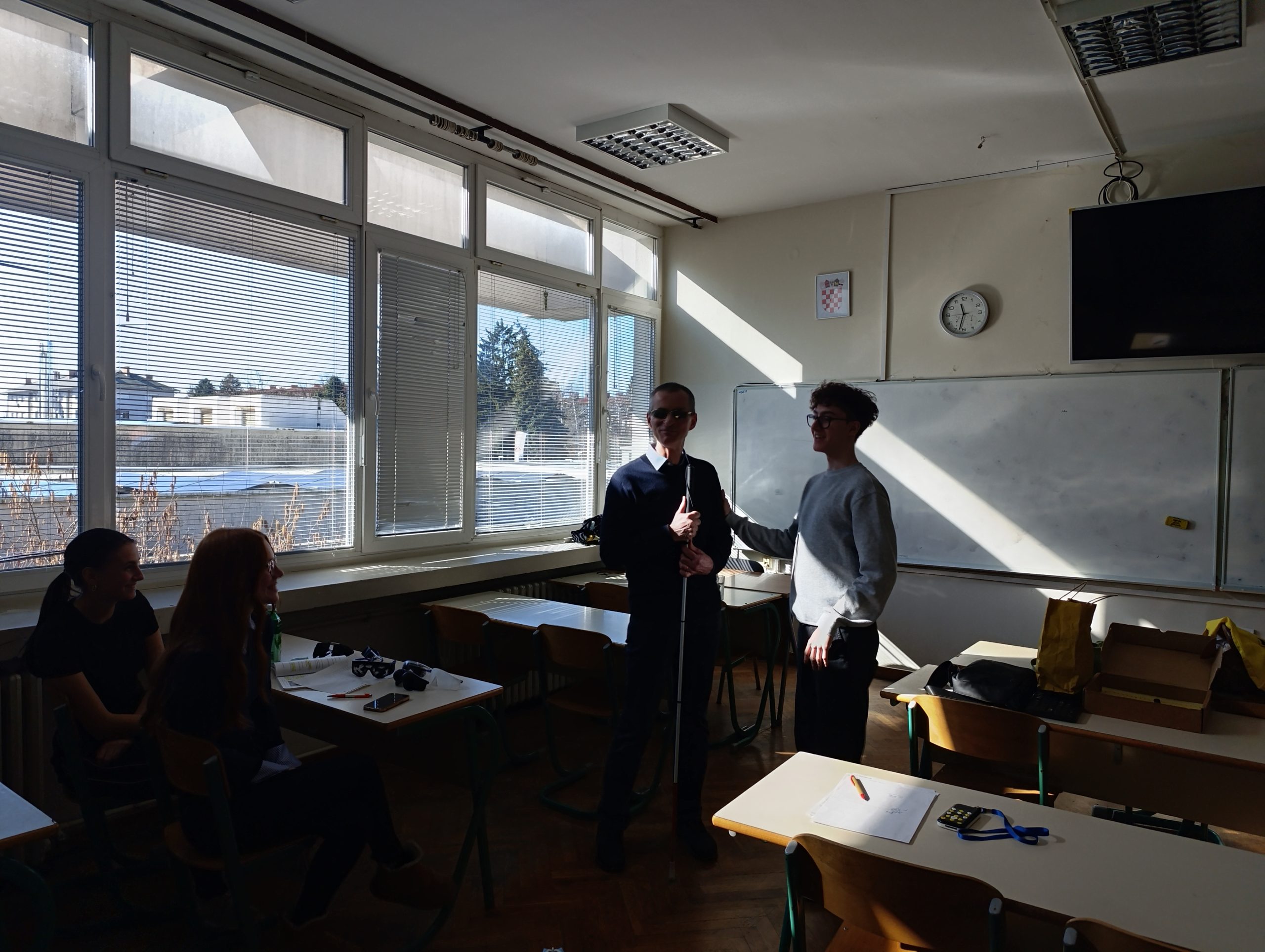Kroz korištenje simulacijskih naočala učenici su upoznali različite vrste oštećenja vida i iskusili kako osobe s oštećenjem vida percipiraju okolinu. Također su imali priliku isprobati kretanje i orijentaciju pomoću dugog bijelog štapa te se u praksi susresti sa situacijama s kojima se slijepe osobe svakodnevno suočavaju.