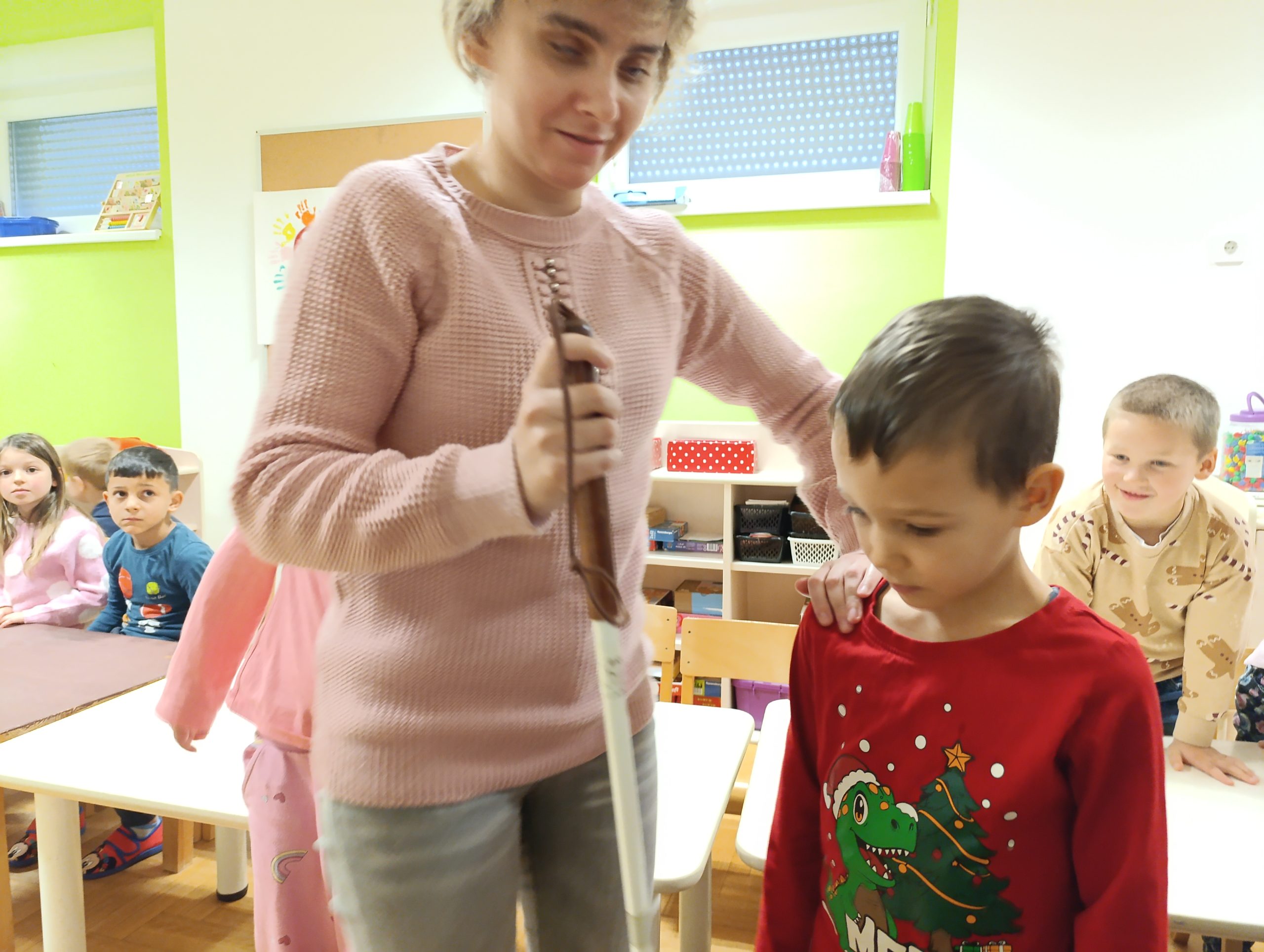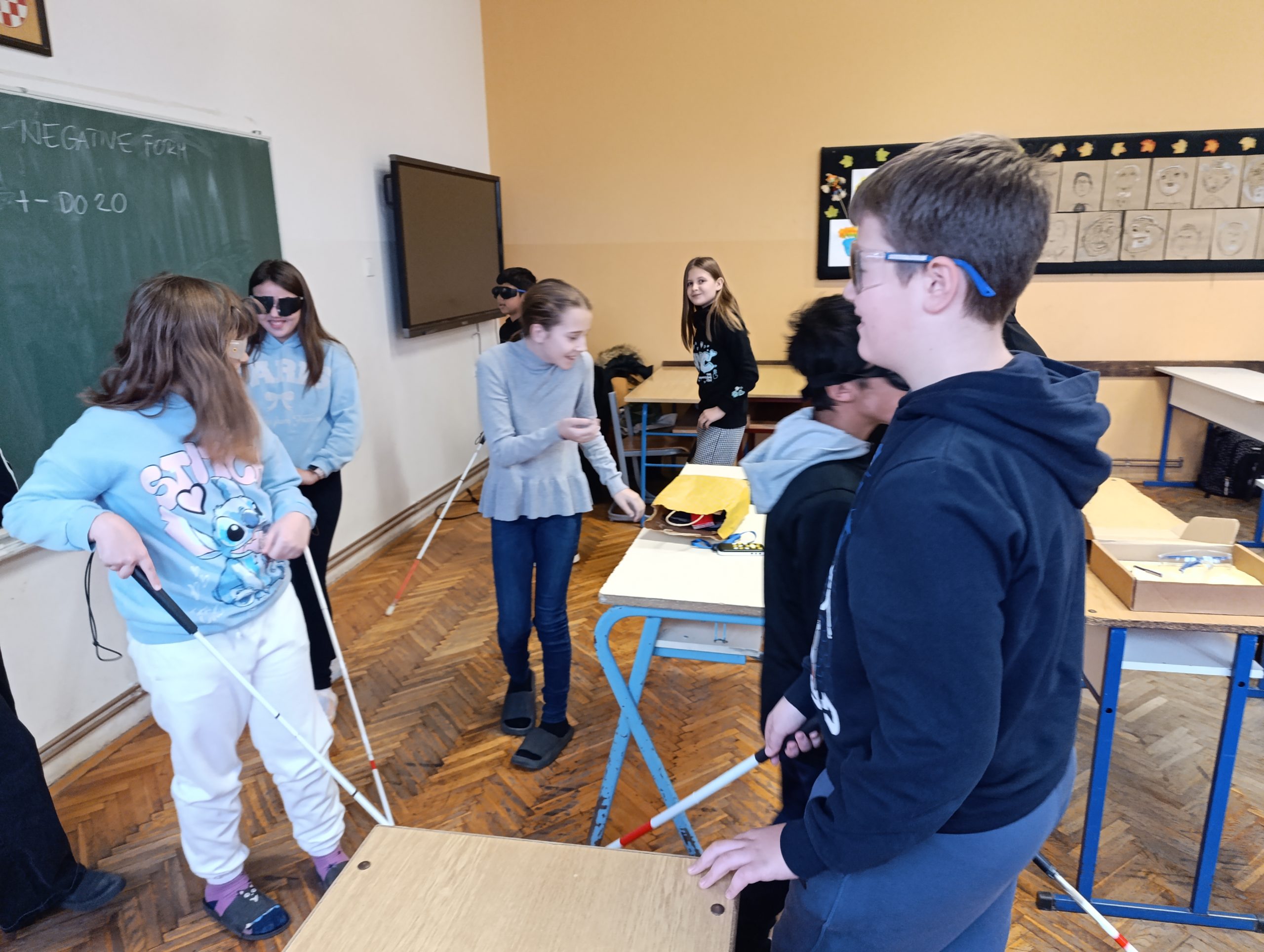 Tijekom radionica djeca su imala priliku isprobati simulacijske naočale koje prikazuju različite vrste oštećenja vida te su razgovarala o tome kako se takve poteškoće očituju u svakodnevnim situacijama poput kretanja, čitanja ili prepoznavanja okoline. Naučili su i kako se slijepe osobe kreću i orijentiraju u prostoru pomoću dugog bijelog štapa. Posebno su istražili koliko je važno oslanjati se na osjetila sluha i dodira u situacijama kada vid nije dostupan. Sudionici su, uz to, upoznali osnove brajice, otkrili važnost brajičnog pisma za obrazovanje i samostalnost osoba s oštećenjem vida te saznali koju ulogu zvučne knjige imaju u pristupu informacijama. Na kraju, djeca su vježbala pravilnu komunikaciju sa slijepim osobama, učeći kako pristupiti, kako ponuditi pomoć i kako se ponašati u situacijama u kojima je potrebna dodatna podrška.