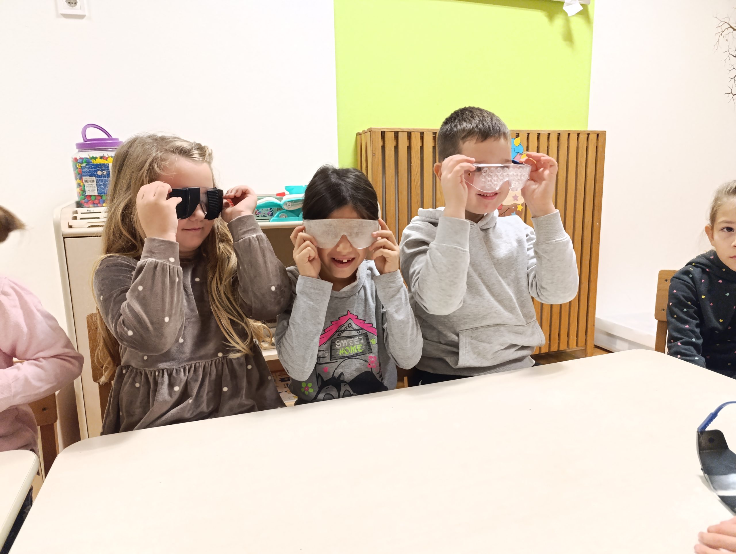 U ponedjeljak, 1. prosinca, i utorak, 2. prosinca 2025. godine, Udruga je održala radionice „Gledajte kroz naše naočale“ u Hlebinama. Prvog dana sudjelovali su petaši Područne škole Ivan Generalić, a sljedećeg dana predškolarci iz Dječjeg vrtića Leptirić. Djeca su s velikim entuzijazmom pristupila aktivnostima i pokazala znatiželju i razumijevanje, a interaktivna igra izazvala je mnogo osmijeha i zabave.