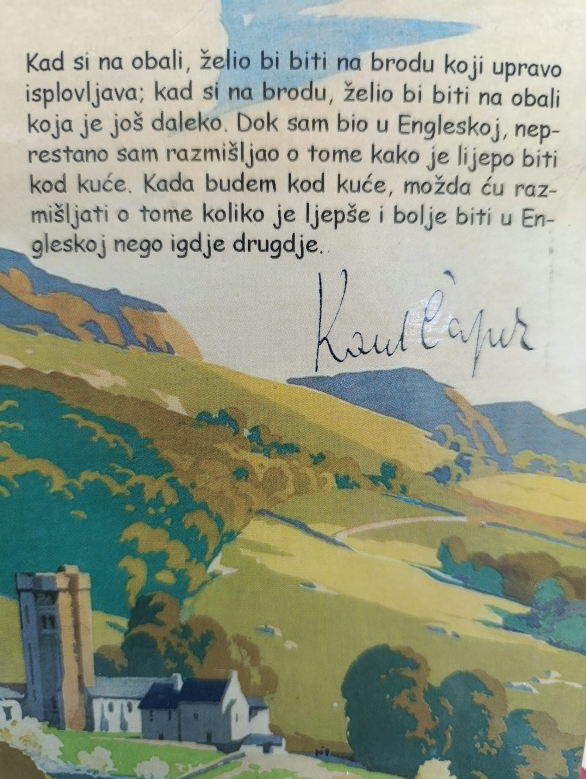 Osim o samoj knjizi, razgovarali smo o Engleskoj nekad i danas, uspoređujući Čapekove dojmove iz 1924. godine sa suvremenim pogledom na tu zemlju. Dotaknuli smo se i teme putovanja općenito – kako su se nekad putovalo, a kako danas, te kako putovanja obogaćuju naše živote.