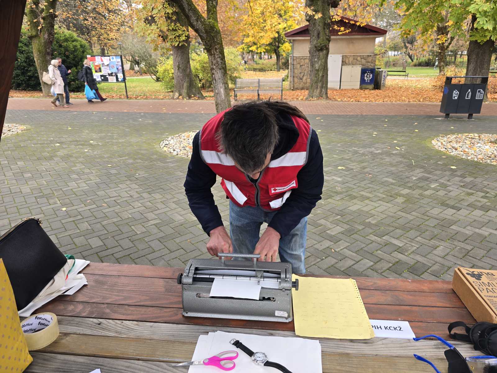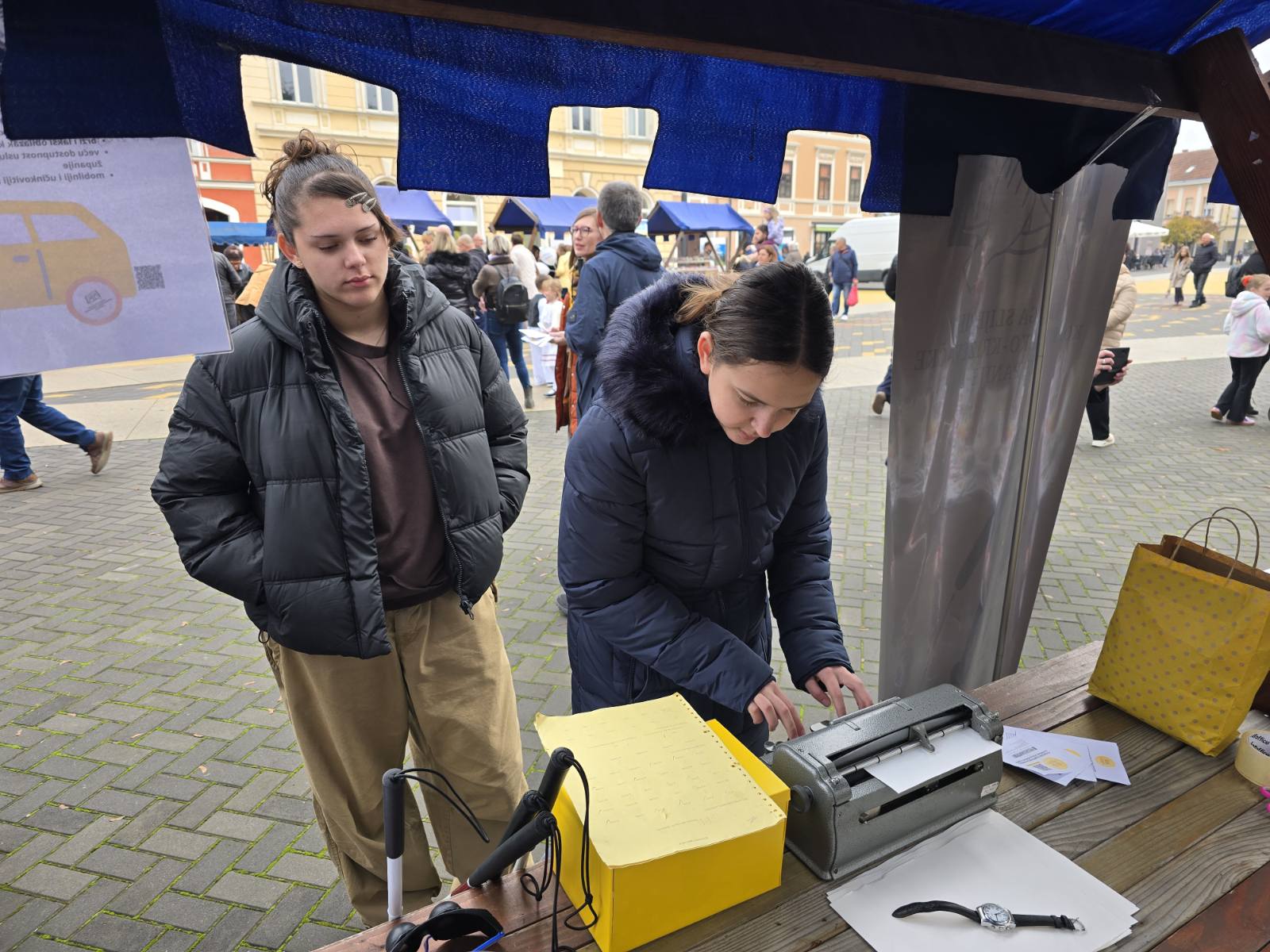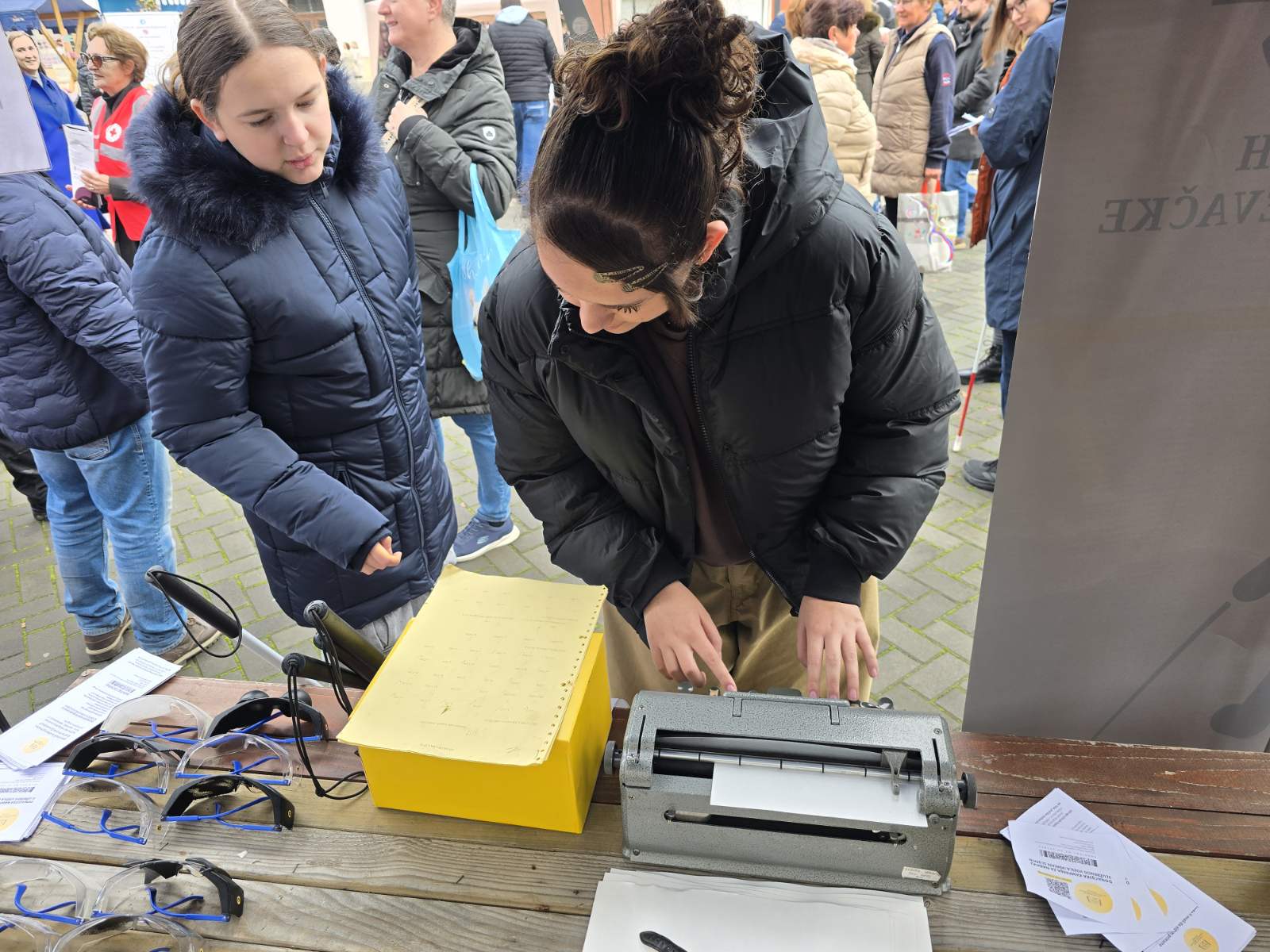 Posjetitelji su isprobali simulacijske naočale i doživjeli kako izgleda svakodnevica osoba s različitim oštećenjima vida, napisali svoje ime na brajici pomoću brajeve mašine te prošetali pomoću dugog bijelog štapa uz stručne upute djelatnika Udruge.